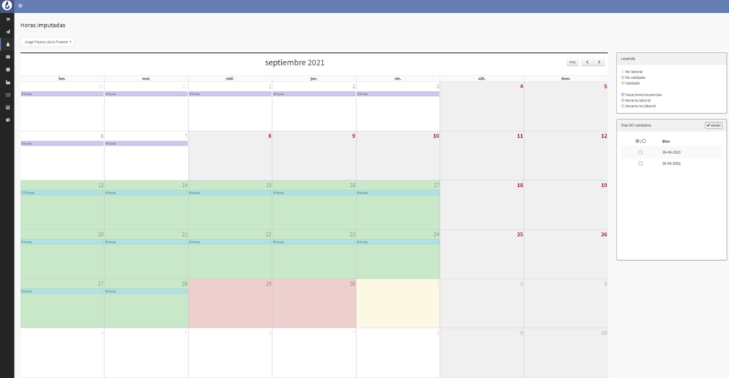 - Control de horas imputadas, vacaciones y ausencias. Validación controlada de horas.