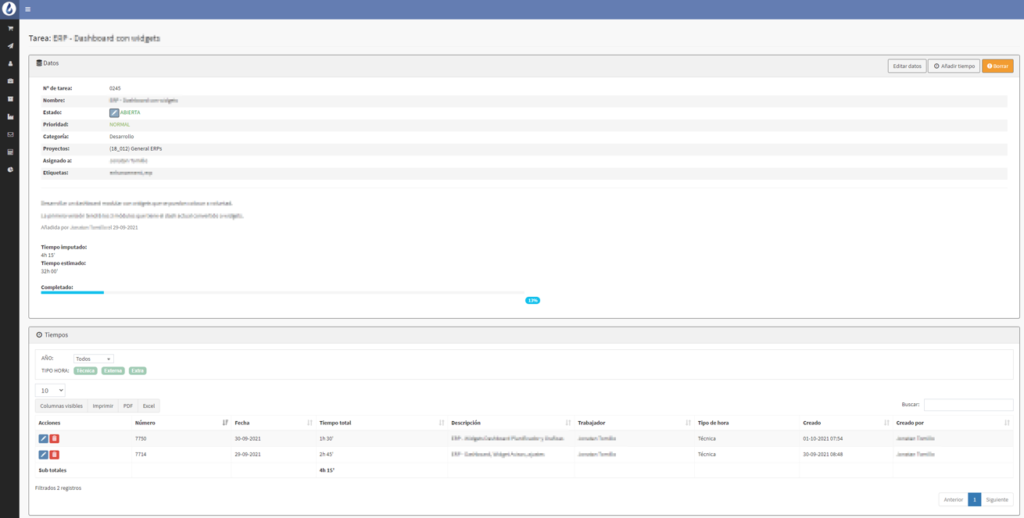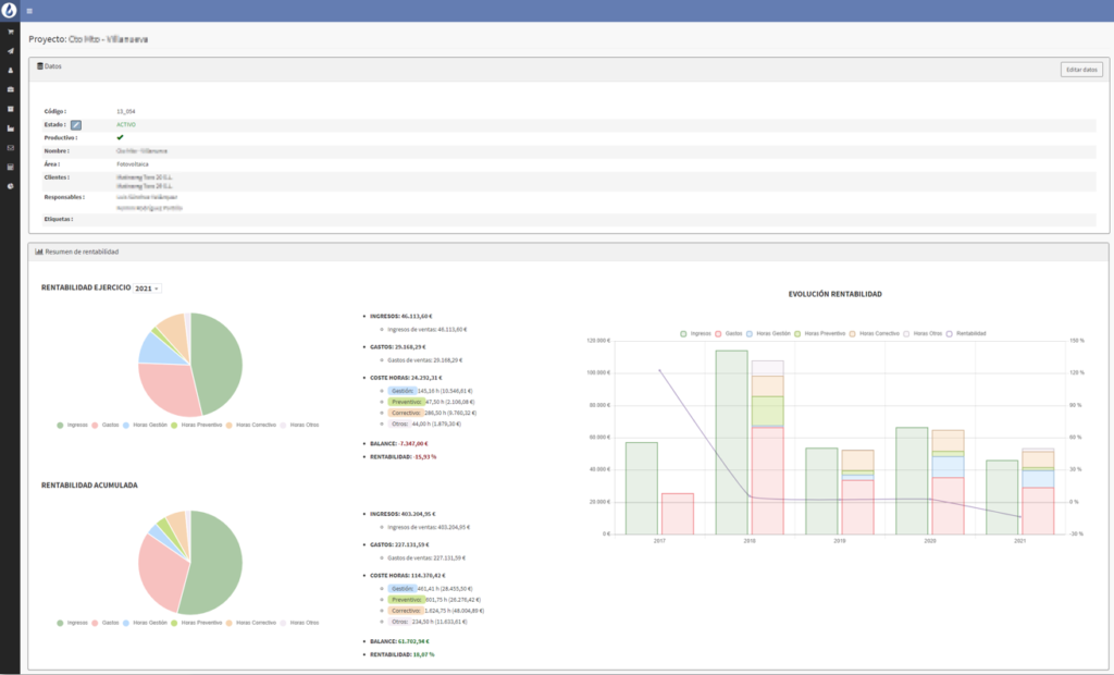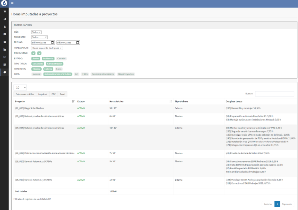 - Análisis y rentabilidad de proyectos. Desglose de horas imputadas.
