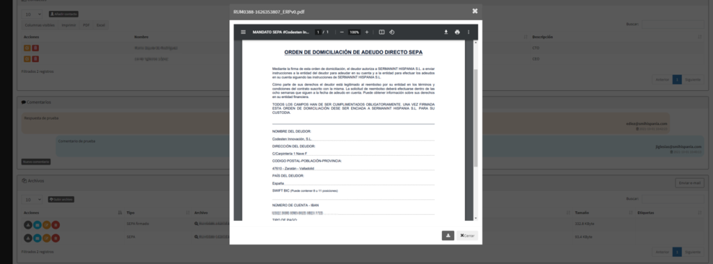 - Gestión visual de comentarios, e incidencias automáticas y manuales. Gestión documental, visor online de PDFs, y generación automática de plantillas y envío de emails.
